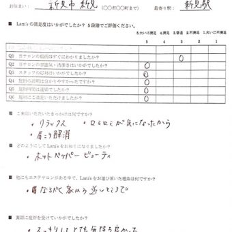 ニックネーム:益愛命(まあや) 年齢: お住まい:清音上中島 最寄り駅: 利用メニュー:お誕生日:ストーン+フェイシャル Q1.当サロンの場所はすぐにわかりましたか? ・・・ 大いに満足 Q2.当サロンの雰囲気・清潔さはいかがでしたか? ・・・...