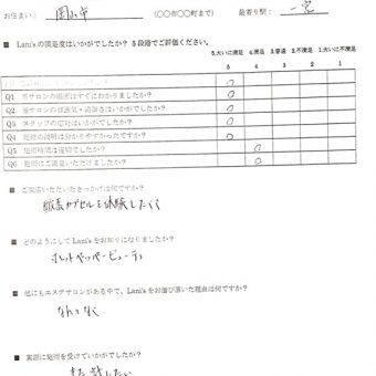 ニックネーム:みき 年齢:41歳 お住まい:岡山市 最寄り駅:一宮 利用メニュー:カプセル Q1.当サロンの場所はすぐにわかりましたか? ・・・ 大いに満足 Q2.当サロンの雰囲気・清潔さはいかがでしたか? ・・・ 大いに満足 Q3.スタッフの応対はいかがで...