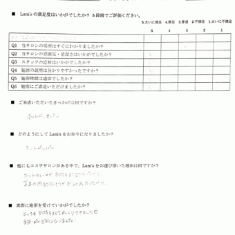 ニックネーム:あやの 年齢: お住まい: 最寄り駅: 利用メニュー:ロミロミスクールモデル Q1.当サロンの場所はすぐにわかりましたか? ・・・ 普通 Q2.当サロンの雰囲気・清潔さはいかがでしたか? ・・・ 満足 Q3.スタッフの応対はいかが...