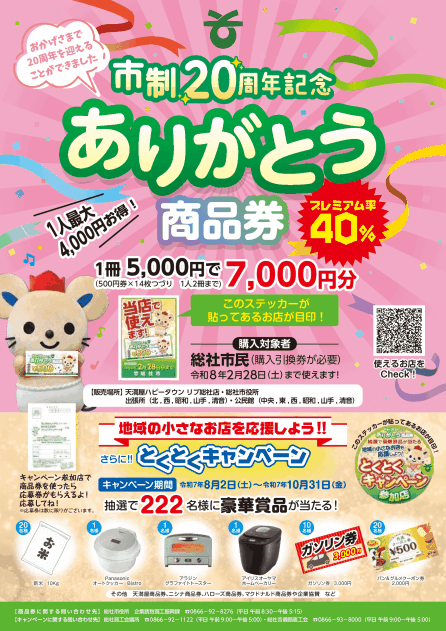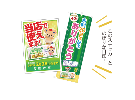 市政20周年ありがとう商品券が当店で使えます。